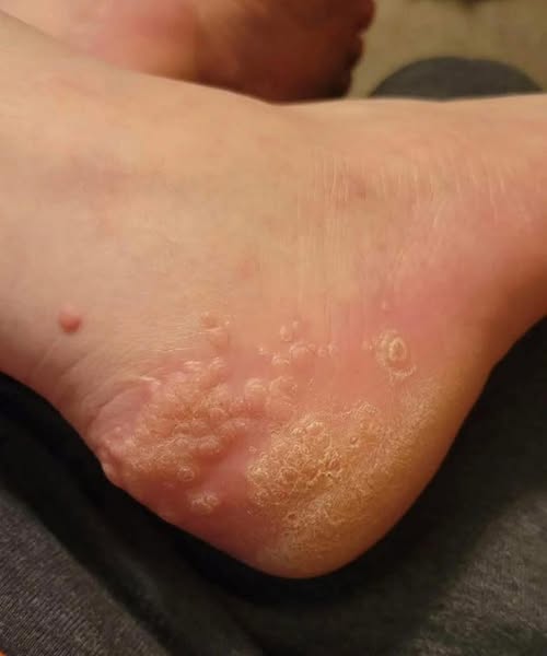 Kabarcıklar: Yoğun sürtünme başlangıçta sıvı dolu kabarcıklara neden olabilir ve enfeksiyon gelişirse bunlar sarımsı bir görünüm alabilir.